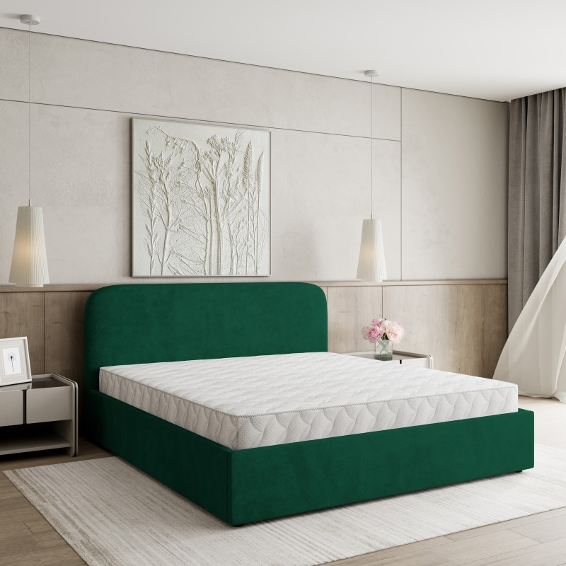 Masseno Łóżko tapicerowane RENIVE z pojemnikiem na pościel 180x200 cm - Butelkowa zieleń, KRONOS 19