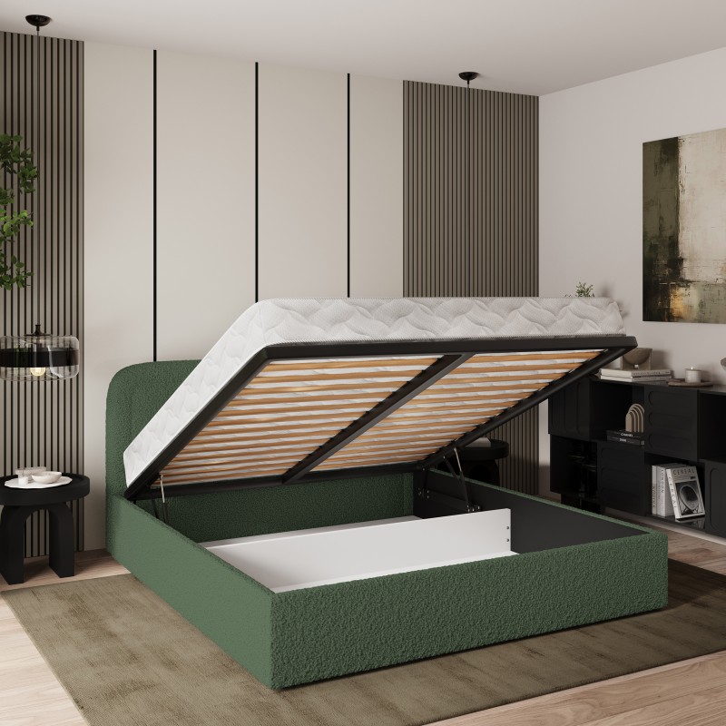Każdy detal, od miękkiego w dotyku obicia po staranne wykończenie, został zaprojektowany, by zapewnić Ci głęboki, regenerujący sen i poczucie luksusu – każdej nocy. Wykorzystaj maksymalnie potencjał swojej sypialni dzięki praktycznym rozwiązaniom do przechowywania. Łóżko wyposażone jest w podnoszony stelaż, wspierany przez niezawodny mechanizm. Dzięki temu, dostęp do obszernego schowka na pościel jest całkowicie bezwysiłkowy.