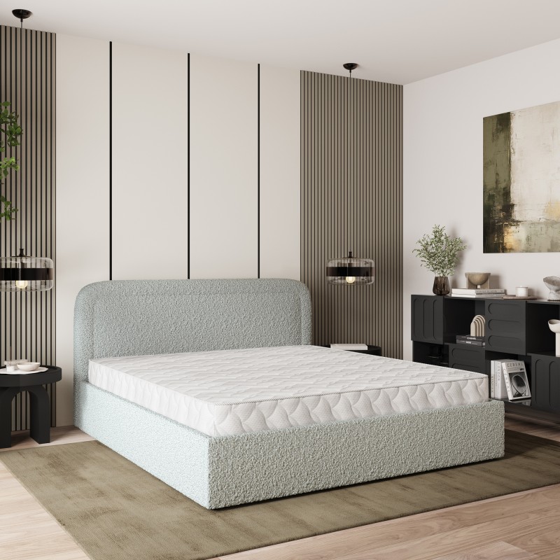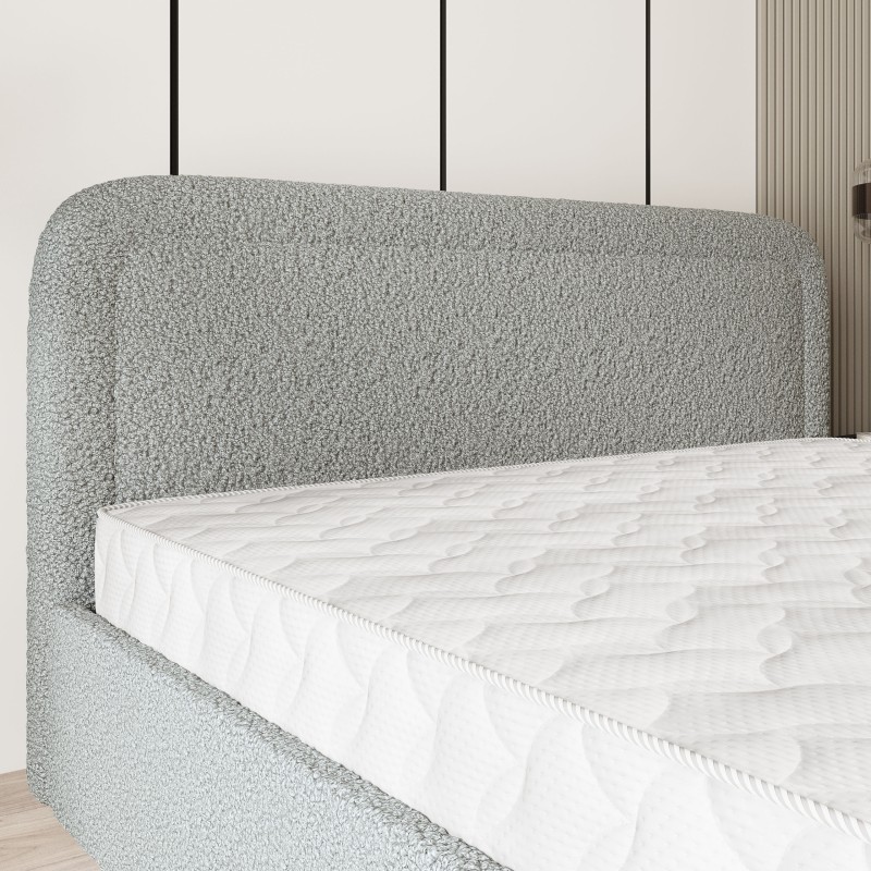 - Tapicerowany, miękki zagłówek to obietnica wyjątkowego komfortu i wysokiej jakości wypoczynku. Dzięki niemu łóżko staje się idealnym oparciem podczas wieczornej lektury czy relaksu. Całość wykończona jest przyjemną w dotyku tkaniną, nadającą modny i luksusowy wygląd.