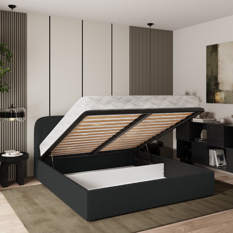 Masseno Łóżko tapicerowane BENIRA z pojemnikiem na pościel 180x200 cm - Czarny, QUELLE 100