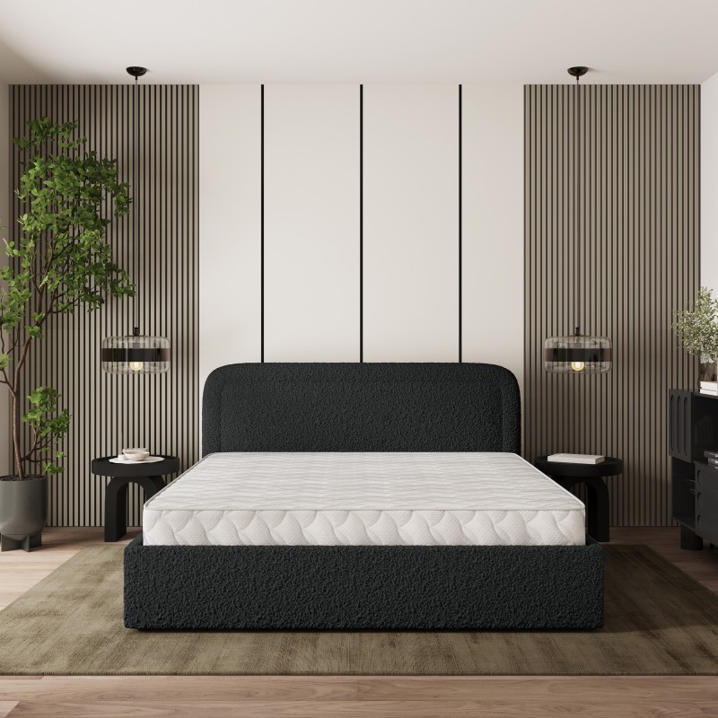 - Tapicerowany, miękki zagłówek to obietnica wyjątkowego komfortu i wysokiej jakości wypoczynku. Dzięki niemu łóżko staje się idealnym oparciem podczas wieczornej lektury czy relaksu. Całość wykończona jest przyjemną w dotyku tkaniną, nadającą modny i luksusowy wygląd.