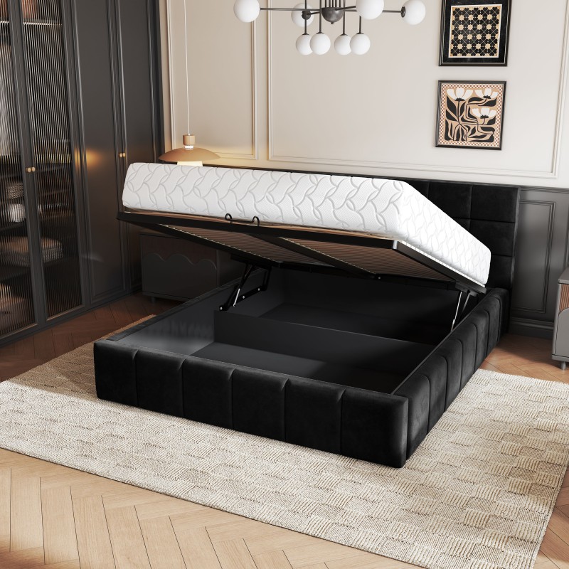 Masseno Łóżko Tapicerowane VERTO z pojemnikiem na pościel 140x200 cm - Czarny, KRONOS 07