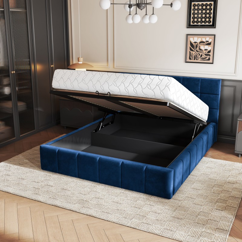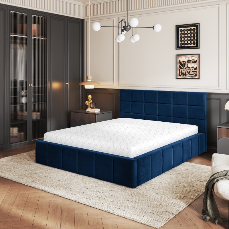 Masseno Łóżko Tapicerowane VERTO z pojemnikiem na pościel 140x200 cm - Niebieski, KRONOS 09