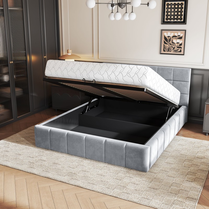 Masseno Łóżko Tapicerowane VERTO z pojemnikiem na pościel 140x200 cm - Jasnoszary, PAROS 05