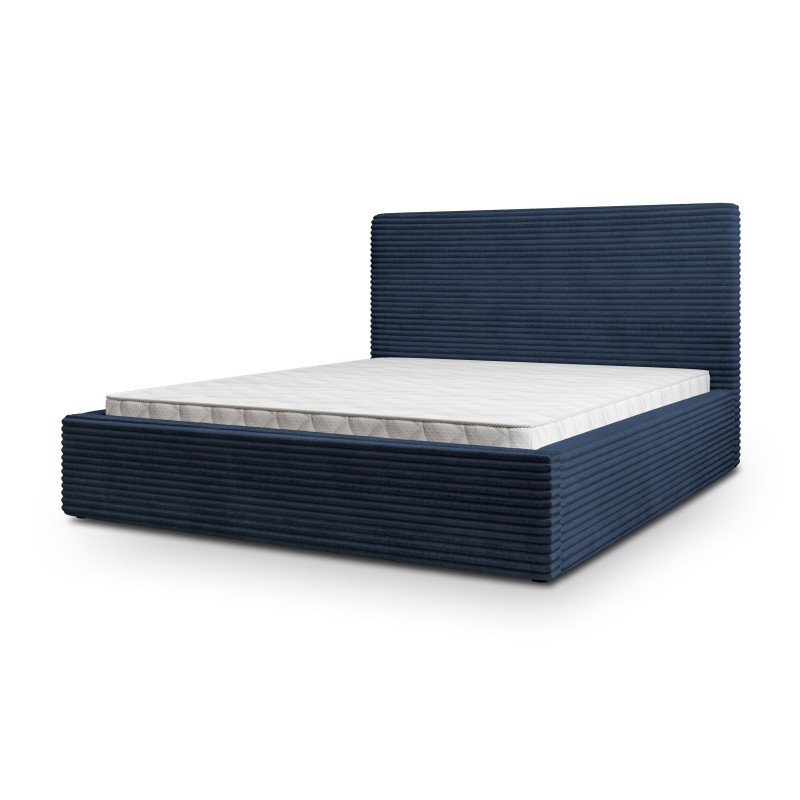 Masseno Łóżko Tapicerowane MIRETTI z pojemnikiem na pościel 140x200 cm - Niebieski, TILIA 77
