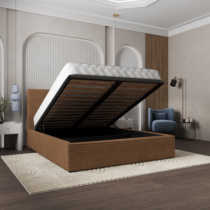 Masseno Łóżko Tapicerowane MIRETTI z pojemnikiem na pościel 140x200 cm - Miedziany, TILIA 56