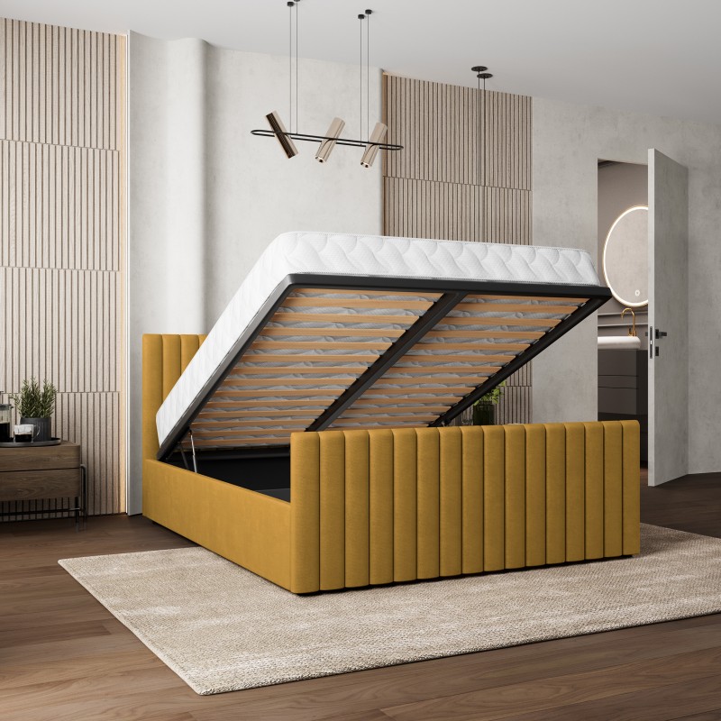 Masseno Łóżko Tapicerowane CANOVA z pojemnikiem na pościel 160x200 cm - Żółty, KRONOS 01