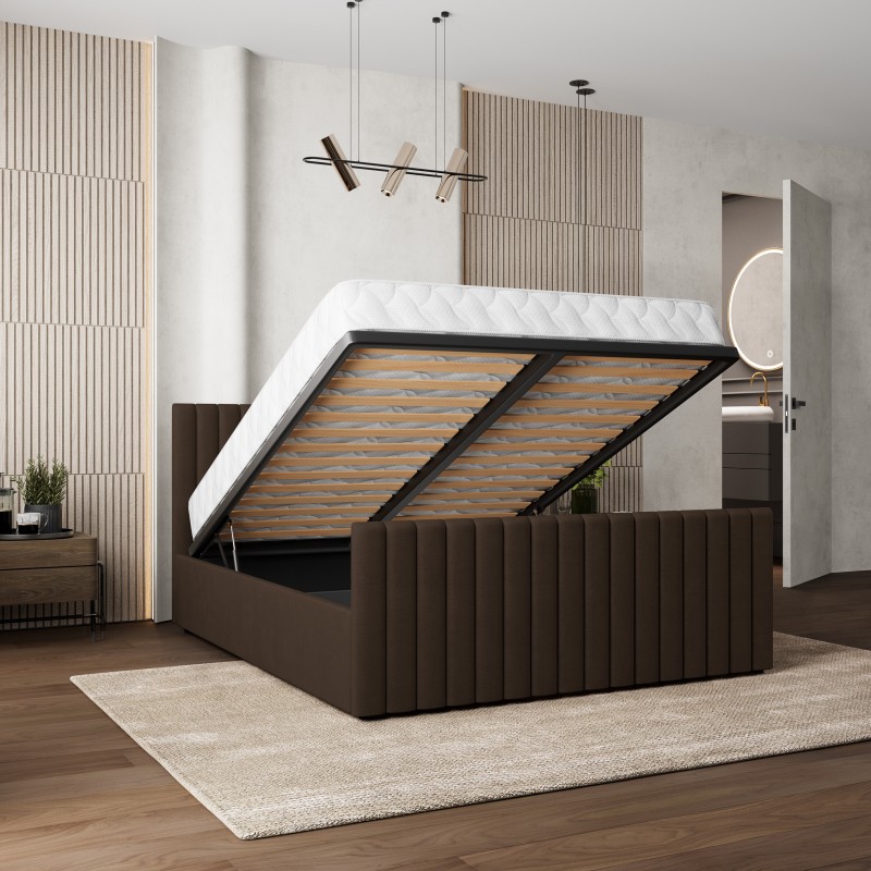 Masseno Łóżko Tapicerowane CANOVA z pojemnikiem na pościel 160x200 cm - Brązowy, KRONOS 06