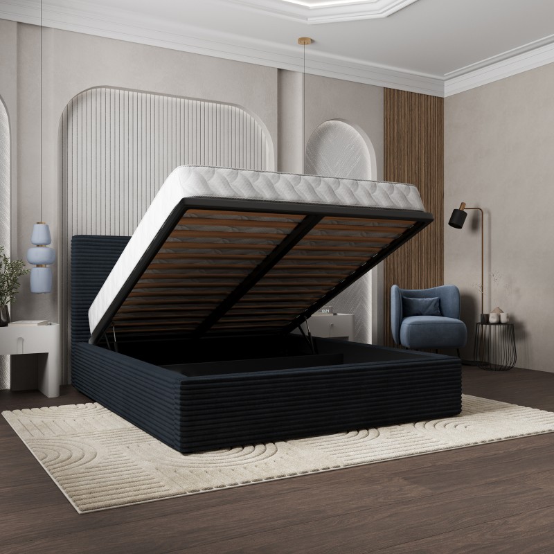 Masseno Łóżko Tapicerowane MIRETTI z pojemnikiem na pościel 160x200 cm - Czarny, TILIA 100