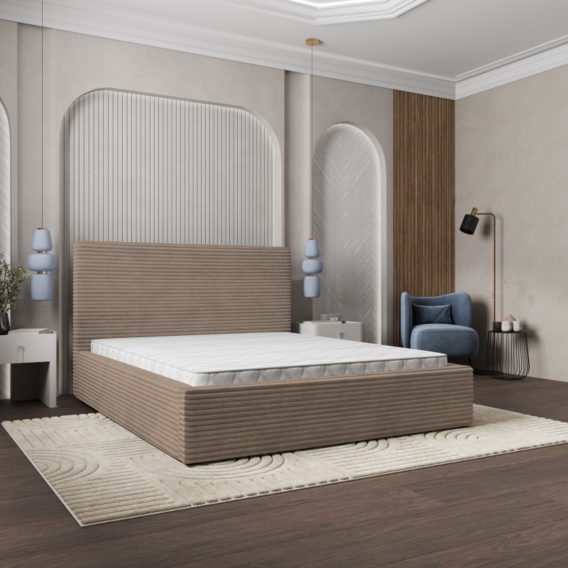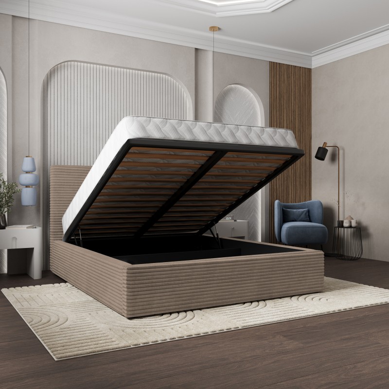 Masseno Łóżko Tapicerowane MIRETTI z pojemnikiem na pościel 160x200 cm - Beżowy, TILIA 17