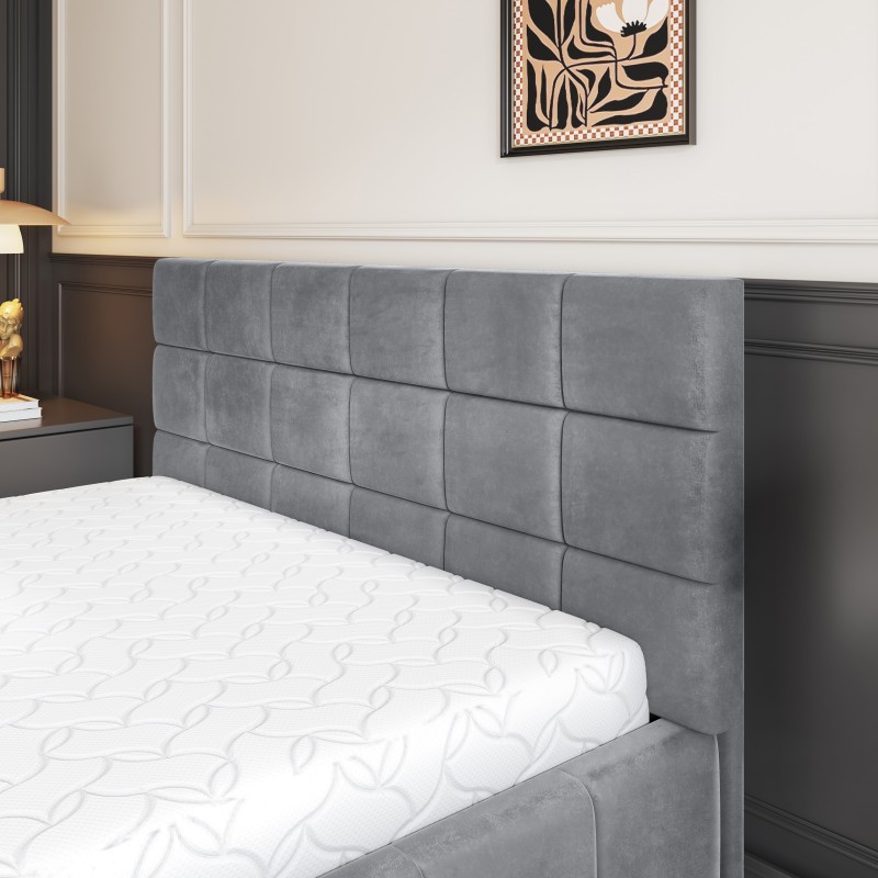 Masseno Łóżko Tapicerowane VERTO z pojemnikiem na pościel 180x200 cm - Szary, KRONOS 15