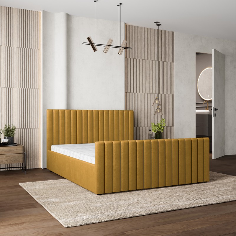 Masseno Łóżko Tapicerowane CANOVA z pojemnikiem na pościel 180x200 cm - Żółty, KRONOS 01