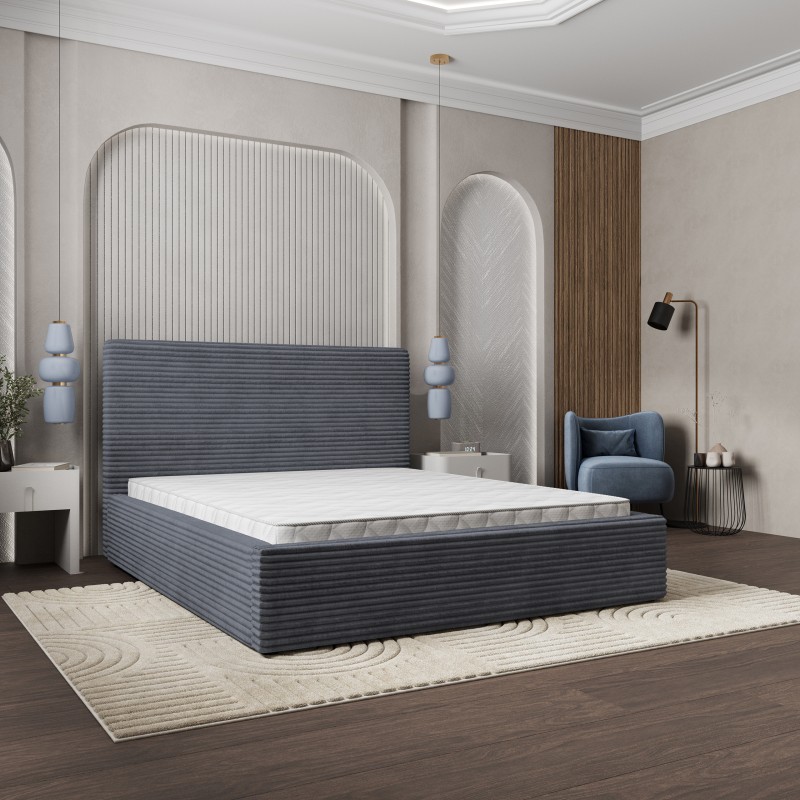 Masseno Łóżko Tapicerowane MIRETTI z pojemnikiem na pościel 180x200 cm - Grafitowy, TILIA 90