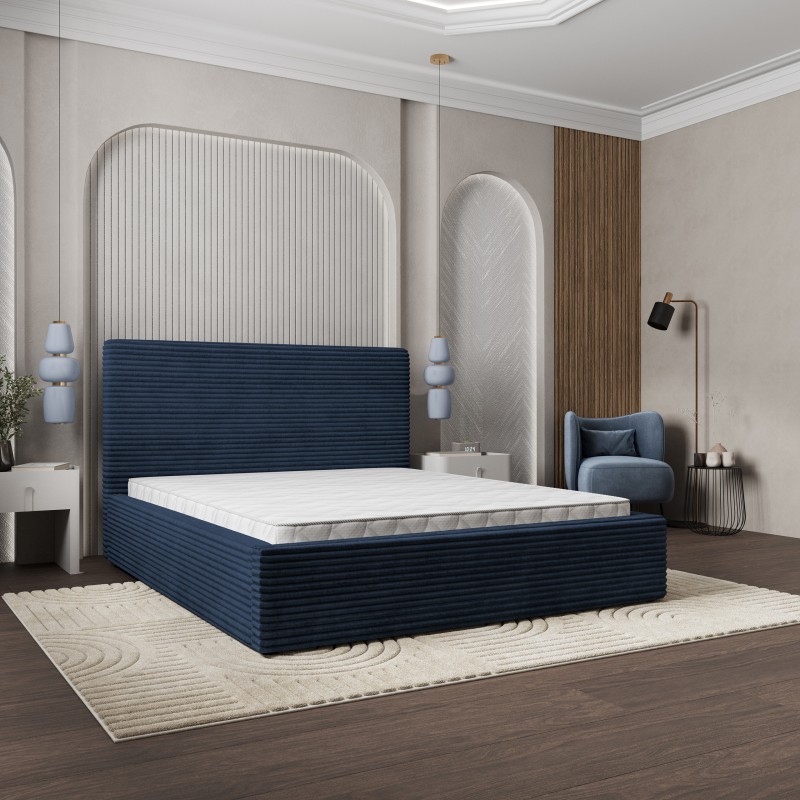 Masseno Łóżko Tapicerowane MIRETTI z pojemnikiem na pościel 180x200 cm - Niebieski, TILIA 77