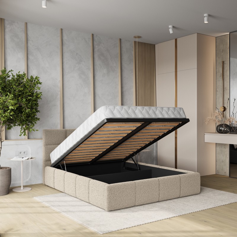 Masseno Łóżko Tapicerowane COMO z pojemnikiem na pościel 140x200 cm - Beżowy, QUELLE 05