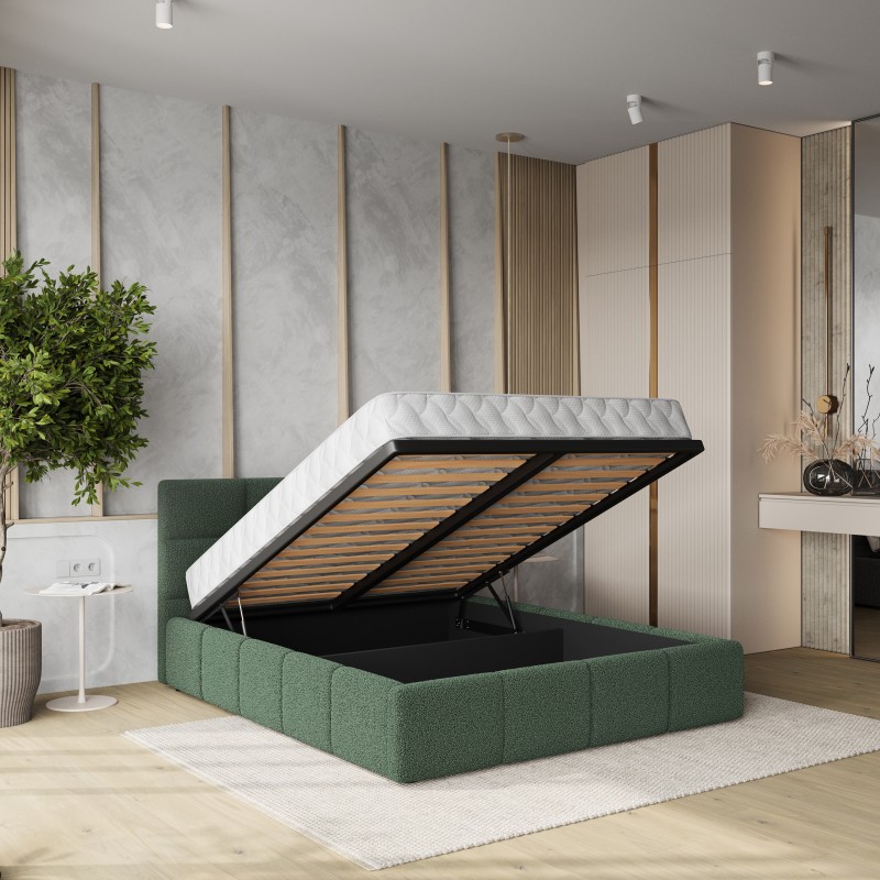 Masseno Łóżko Tapicerowane COMO z pojemnikiem na pościel 140x200 cm - Zielony, QUELLE 37