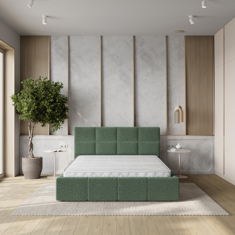 Każdy detal, od miękkiego w dotyku obicia po staranne wykończenie, został zaprojektowany, by zapewnić Ci głęboki, regenerujący sen i poczucie luksusu – każdej nocy. Wykorzystaj maksymalnie potencjał swojej sypialni dzięki praktycznym rozwiązaniom do przechowywania. Łóżko wyposażone jest w podnoszony stelaż, wspierany przez niezawodny mechanizm. Dzięki temu, dostęp do obszernego schowka na pościel jest całkowicie bezwysiłkowy.