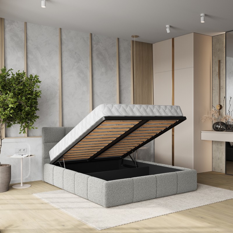 Każdy detal, od miękkiego w dotyku obicia po staranne wykończenie, został zaprojektowany, by zapewnić Ci głęboki, regenerujący sen i poczucie luksusu – każdej nocy. Wykorzystaj maksymalnie potencjał swojej sypialni dzięki praktycznym rozwiązaniom do przechowywania. Łóżko wyposażone jest w podnoszony stelaż, wspierany przez niezawodny mechanizm. Dzięki temu, dostęp do obszernego schowka na pościel jest całkowicie bezwysiłkowy.
