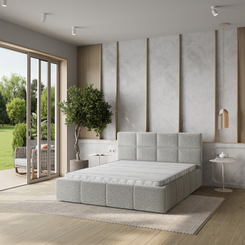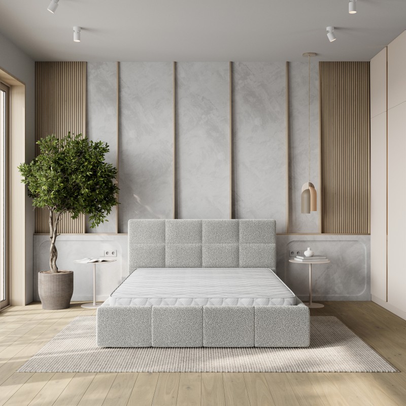 Każdy detal, od miękkiego w dotyku obicia po staranne wykończenie, został zaprojektowany, by zapewnić Ci głęboki, regenerujący sen i poczucie luksusu – każdej nocy. Wykorzystaj maksymalnie potencjał swojej sypialni dzięki praktycznym rozwiązaniom do przechowywania. Łóżko wyposażone jest w podnoszony stelaż, wspierany przez niezawodny mechanizm. Dzięki temu, dostęp do obszernego schowka na pościel jest całkowicie bezwysiłkowy.