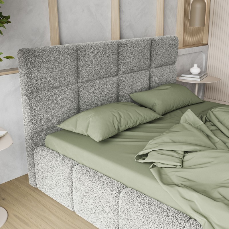 - Tapicerowany, miękki zagłówek to obietnica wyjątkowego komfortu i wysokiej jakości wypoczynku. Dzięki niemu łóżko staje się idealnym oparciem podczas wieczornej lektury czy relaksu. Całość wykończona jest przyjemną w dotyku tkaniną, nadającą modny i luksusowy wygląd.