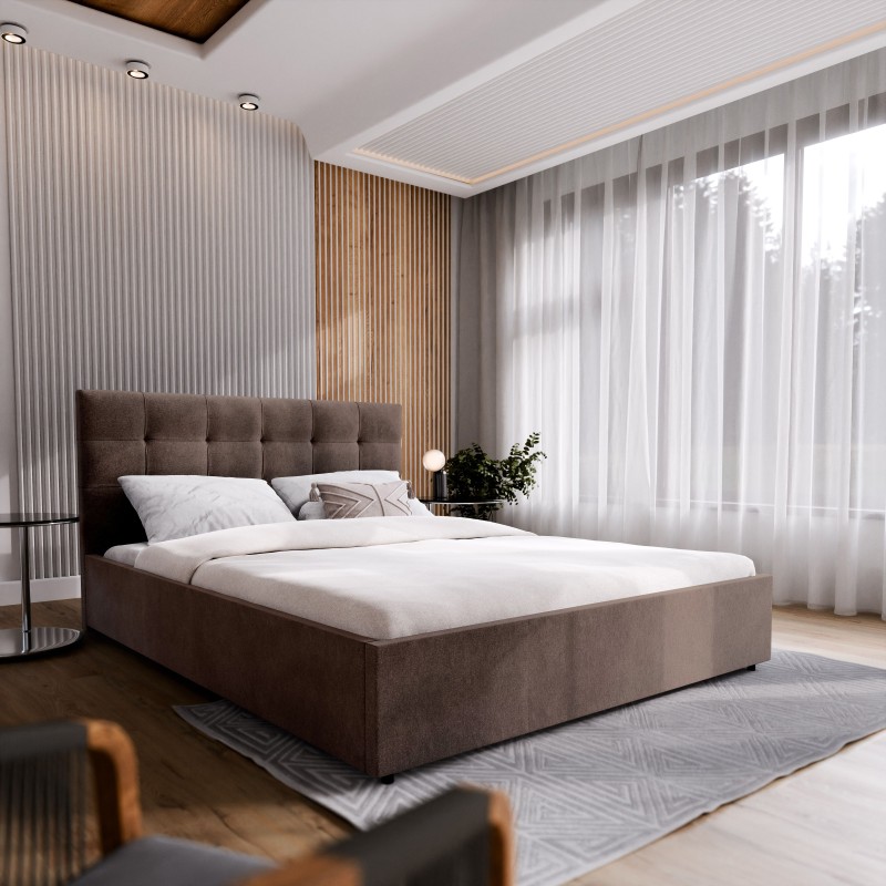 Masseno Łóżko tapicerowane APE z pojemnikiem na pościel 140x200 cm - Brązowy, COSMIC 800
