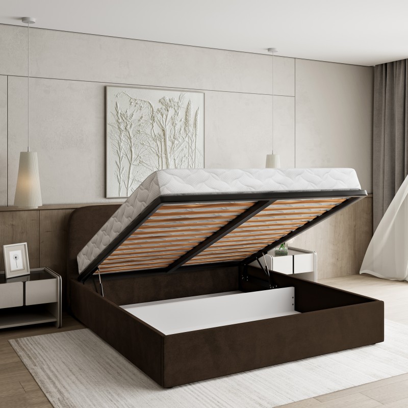 Masseno Łóżko tapicerowane RENIVE z pojemnikiem na pościel 140x200 cm - Brązowy, KRONOS 06