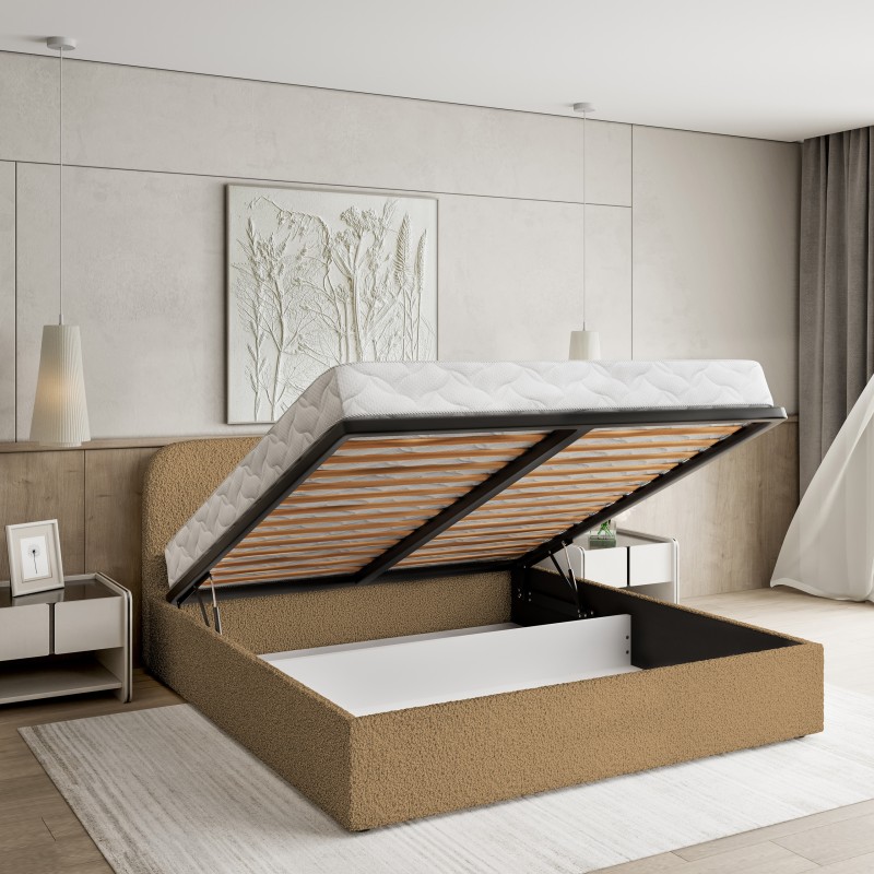Masseno Łóżko tapicerowane RENIVE z pojemnikiem na pościel 140x200 cm - Miodowy, QUELLE 17