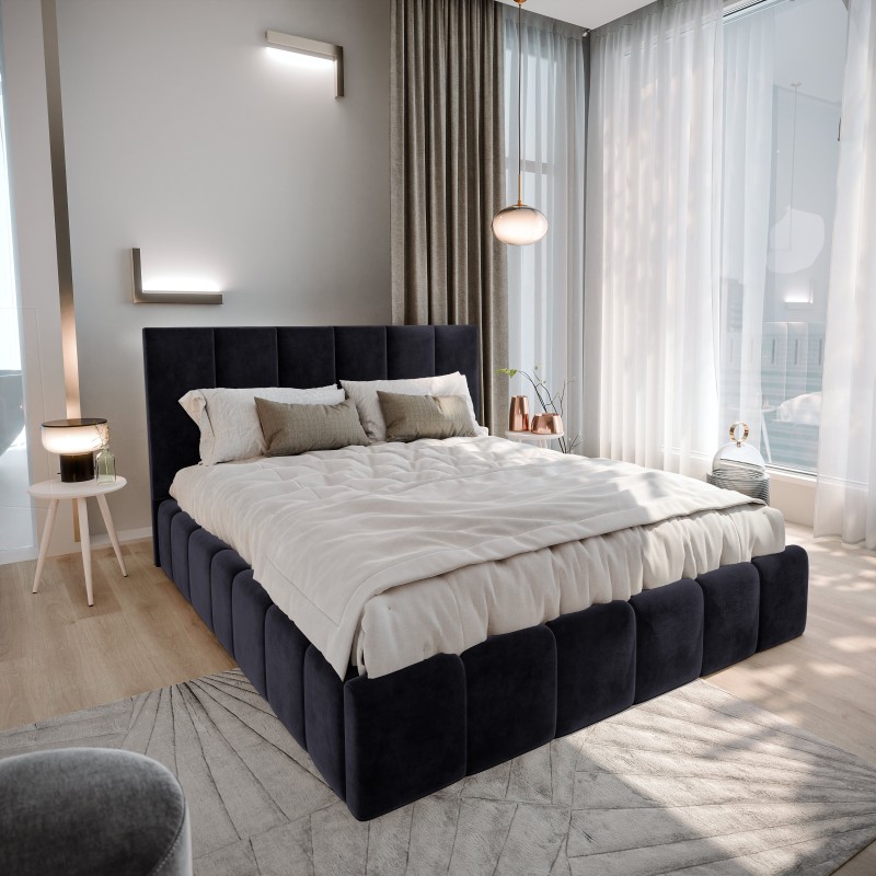 Masseno Łóżko tapicerowane TARANTO z pojemnikiem na pościel 140x200 cm - Czarny, MONOLITH 95