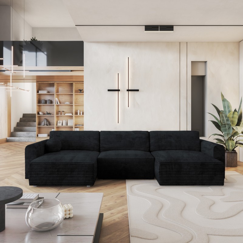 Masseno Narożnik FENTO z funkcją spania i pojemnikiem na pościel Narozniki U, Rozkładana sofa - Czarny, TILIA 100