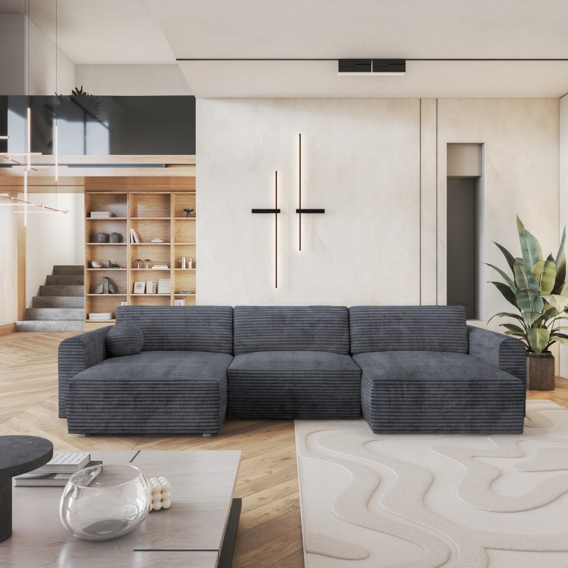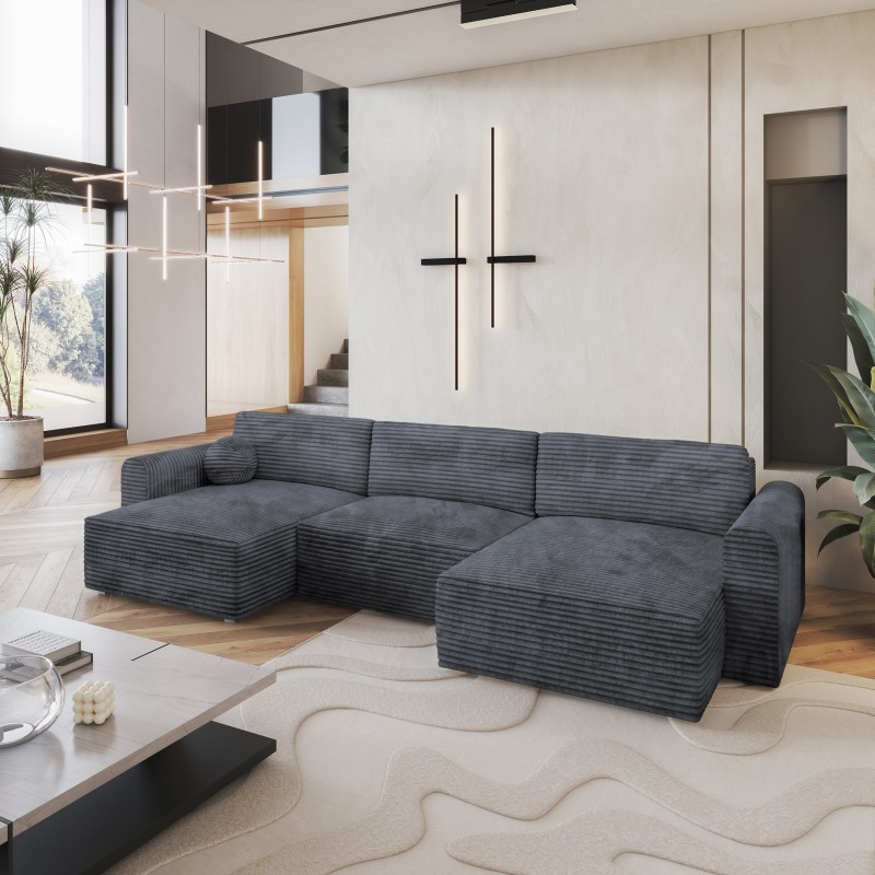 Masseno Narożnik FENTO z funkcją spania i pojemnikiem na pościel Narozniki U, Rozkładana sofa - Grafitowy, TILIA 90