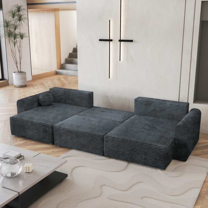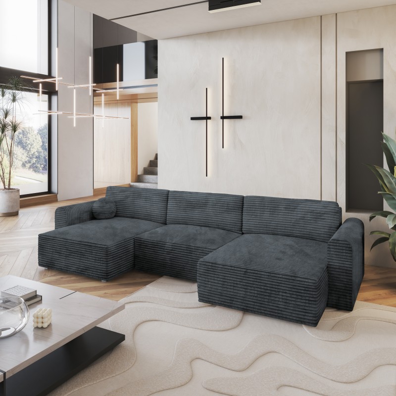 Masseno Narożnik FENTO z funkcją spania i pojemnikiem na pościel Narozniki U, Rozkładana sofa - Szary, TILIA 85