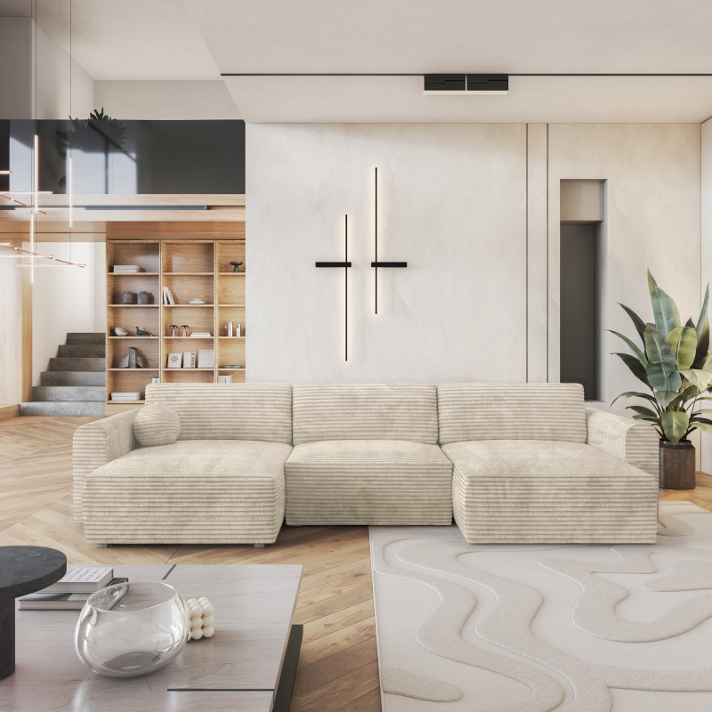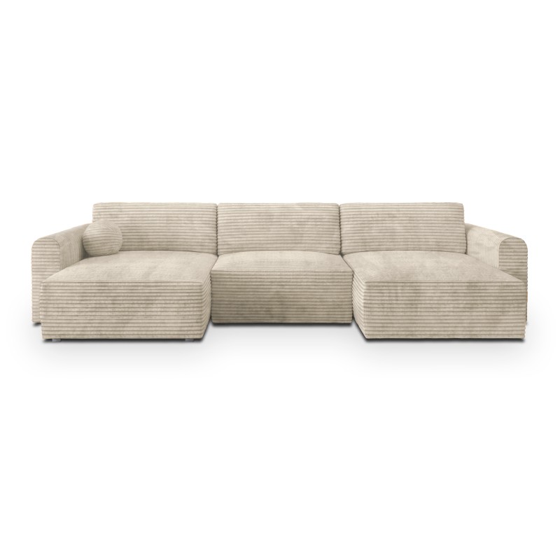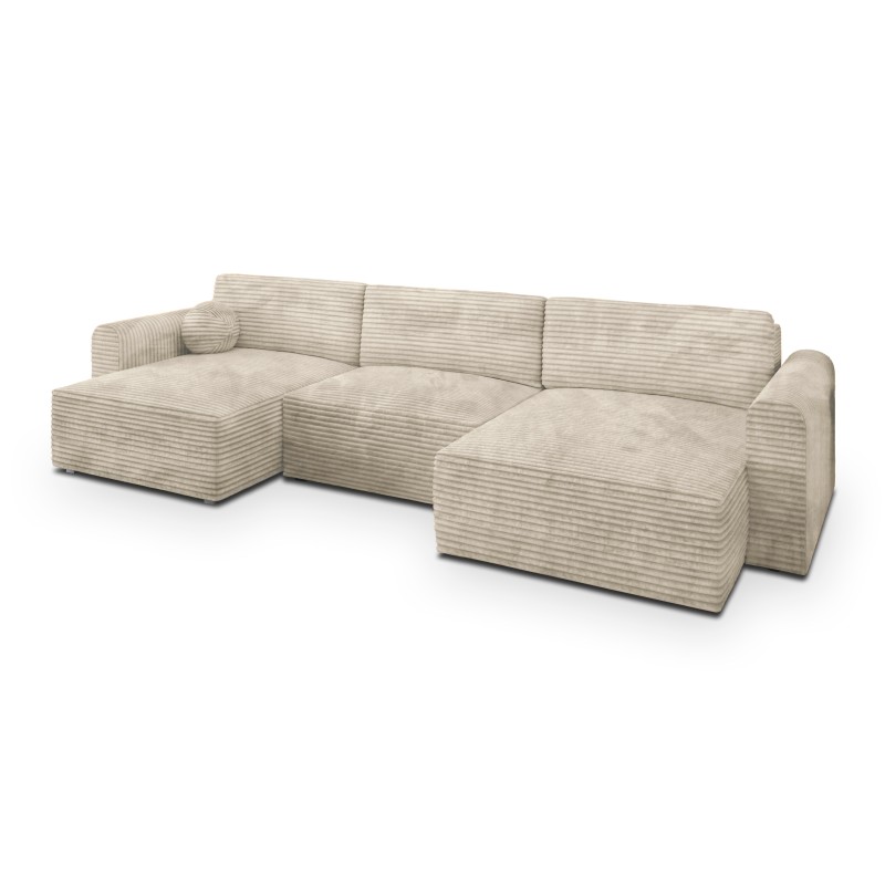 Masseno Narożnik FENTO z funkcją spania i pojemnikiem na pościel Narozniki U, Rozkładana sofa - Kremowy, TILIA 03