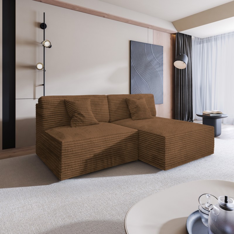 Masseno Narożnik FIORO z funkcją spania i pojemnikiem na pościel Narozniki L, Rozkładana sofa - Miedziany, TILIA 56