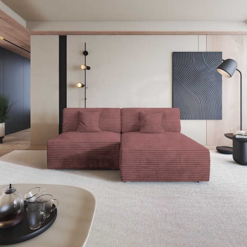 Masseno Narożnik FIORO z funkcją spania i pojemnikiem na pościel Narozniki L, Rozkładana sofa - Pudrowy róż, TILIA 62