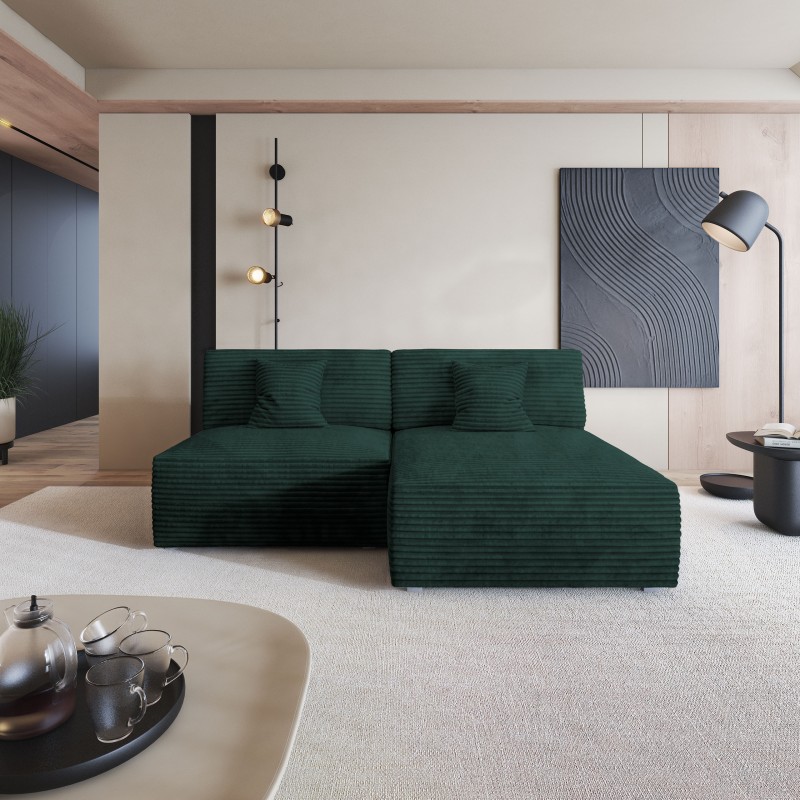 Masseno Narożnik FIORO z funkcją spania i pojemnikiem na pościel Narozniki L, Rozkładana sofa - Butelkowa zieleń, TILIA 39