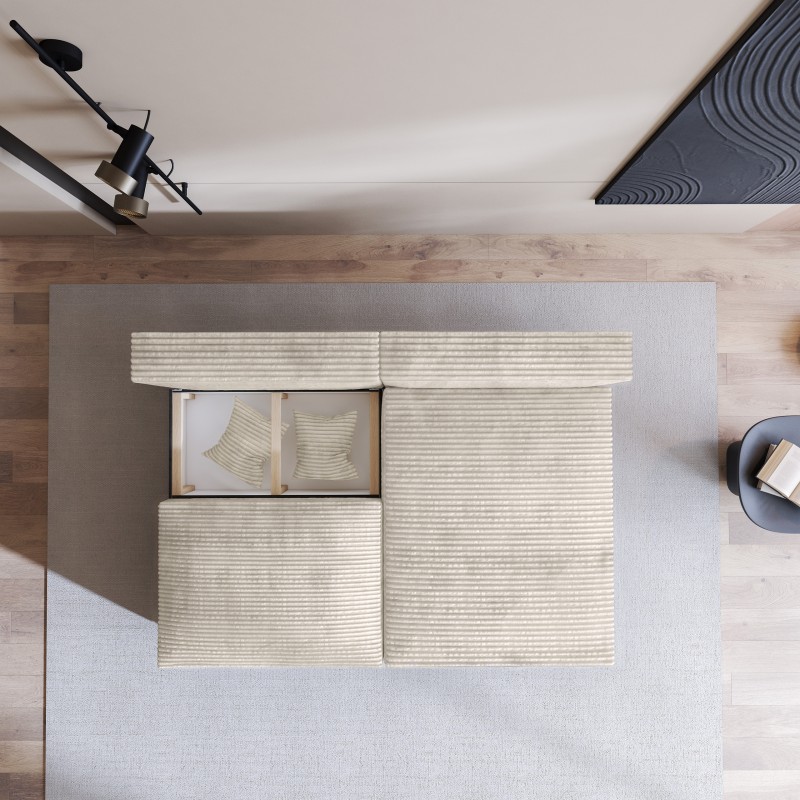 Masseno Narożnik FIORO z funkcją spania i pojemnikiem na pościel Narozniki L, Rozkładana sofa - Kremowy, TILIA 03