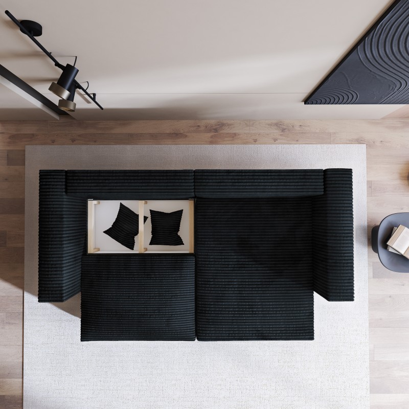 Masseno Narożnik NERIO z funkcją spania i pojemnikiem na pościel Narozniki L, Rozkładana sofa - Czarny, TILIA 100