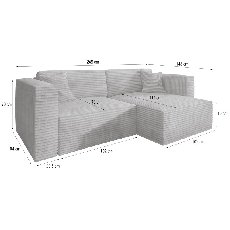 Wyobraź sobie wieczór spędzony na tym wygodnym narożniku, który komfortowo pomieści trzy osoby. NERIO T staje się idealnym miejscem do wspólnych seansów filmowych czy po prostu beztroskich rozmów. Duże poduszki oparciowe oraz dodatkowe poduszki dekoracyjne zwiększają komfort wypoczynku. Niezależnie od tego, czy szukasz centralnego punktu do swojego salonu, czy po prostu marzysz o chwili wytchnienia, ten narożnik dostarczy Ci komfortu na wysokim poziomie.
