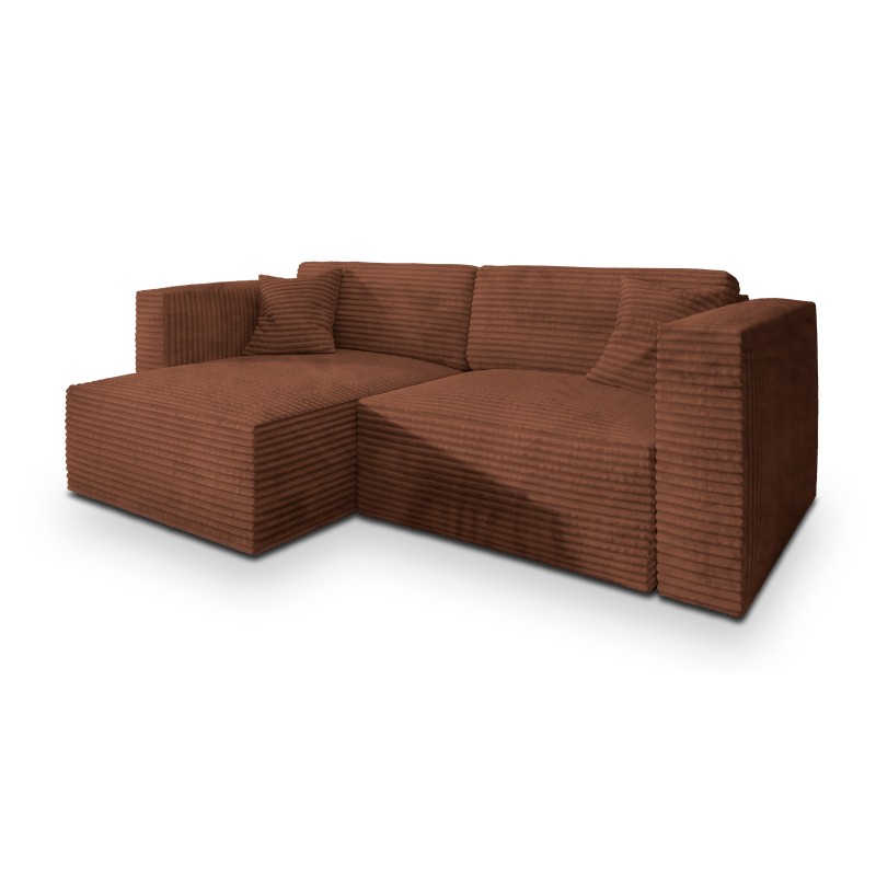 Masseno Narożnik NERIO z funkcją spania i pojemnikiem na pościel Narozniki L, Rozkładana sofa - Brązowy, TILIA 52