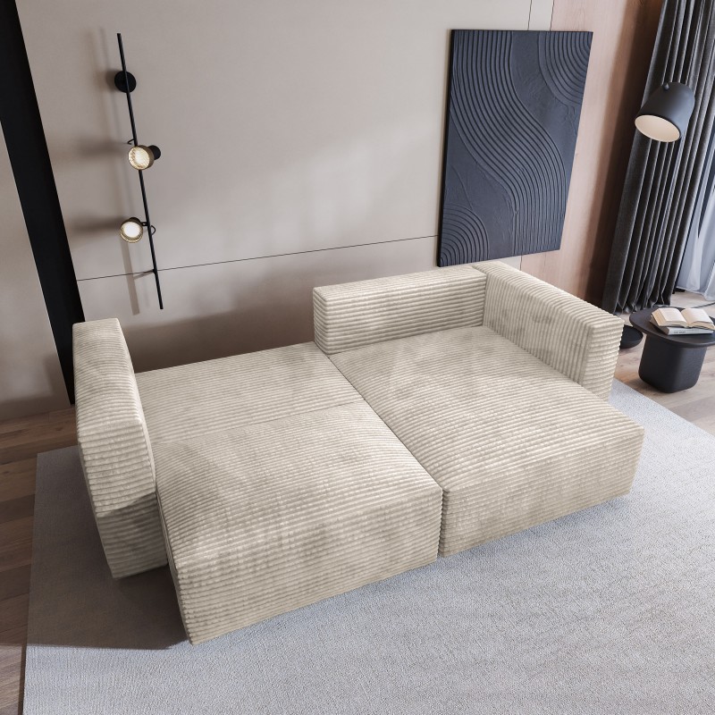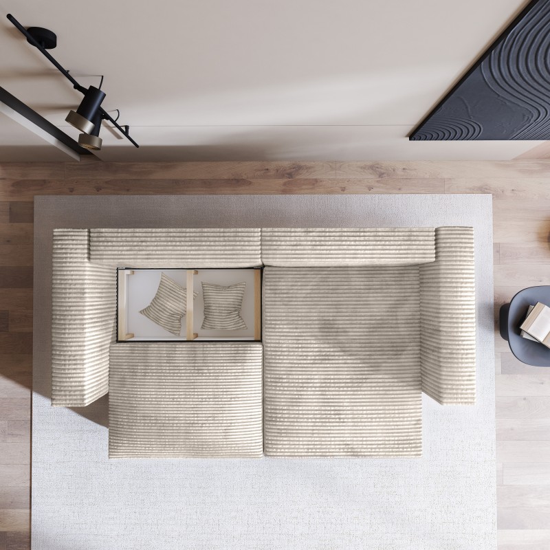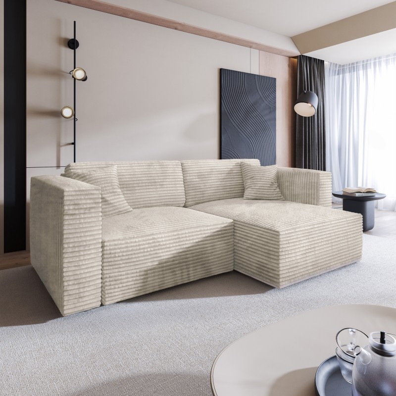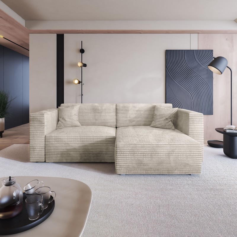 Masseno Narożnik NERIO z funkcją spania i pojemnikiem na pościel Narozniki L, Rozkładana sofa - Kremowy, TILIA 03