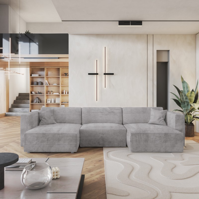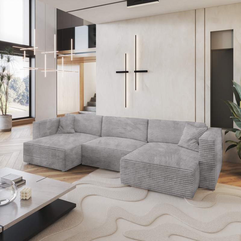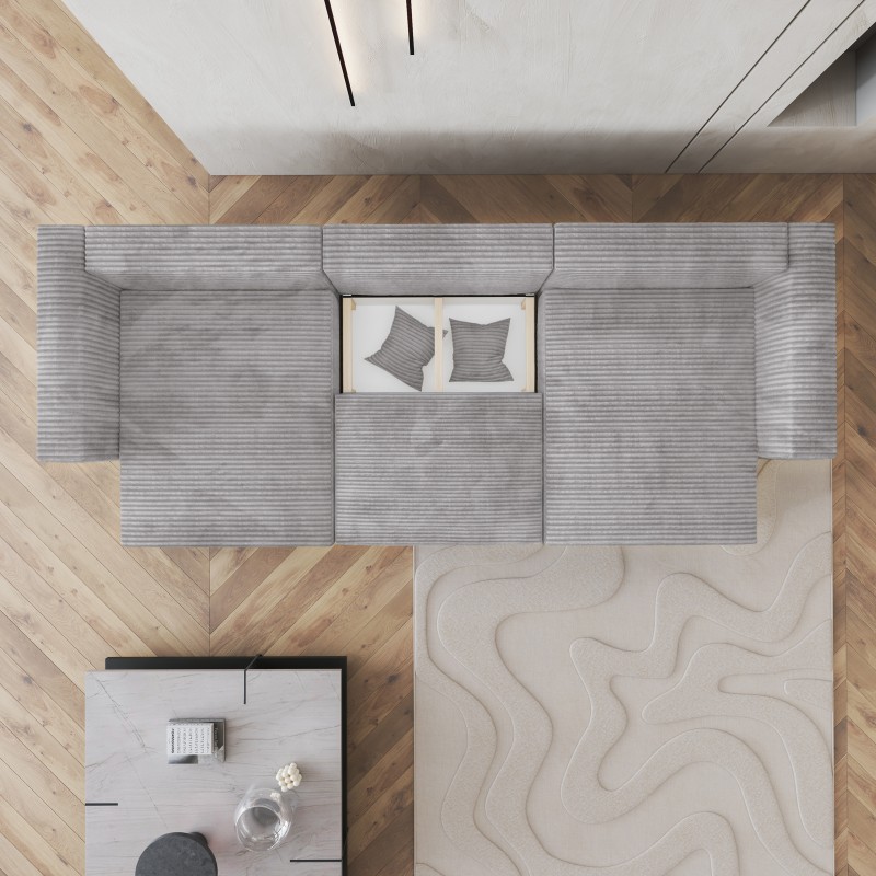 Masseno Narożnik SARMO z funkcją spania i pojemnikiem na pościel Narozniki U, Rozkładana sofa - Jasnoszary, TILIA 86