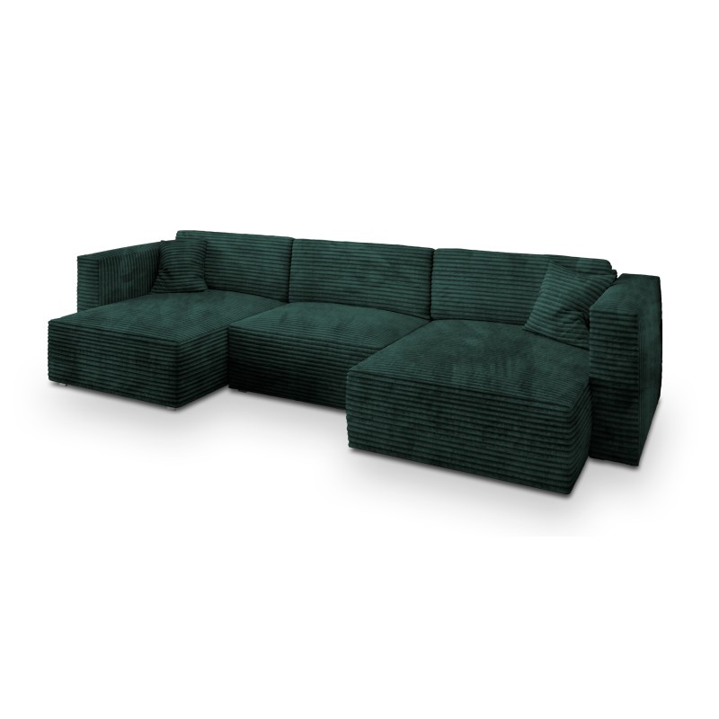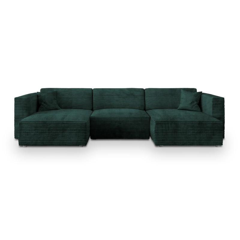 Masseno Narożnik SARMO z funkcją spania i pojemnikiem na pościel Narozniki U, Rozkładana sofa - Butelkowa zieleń, TILIA 39