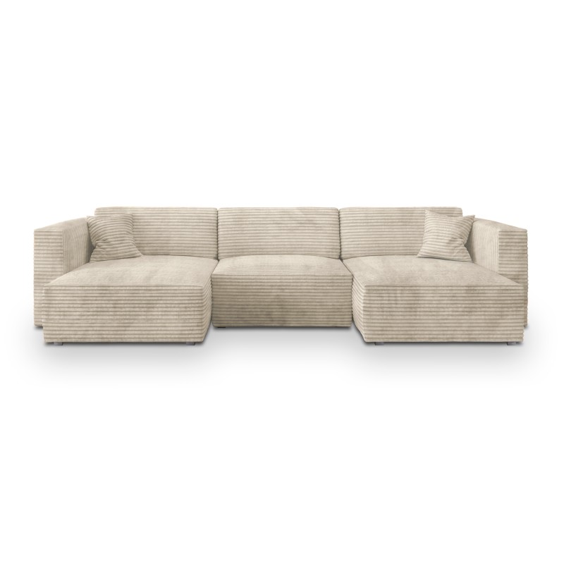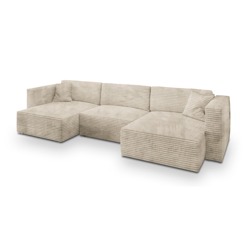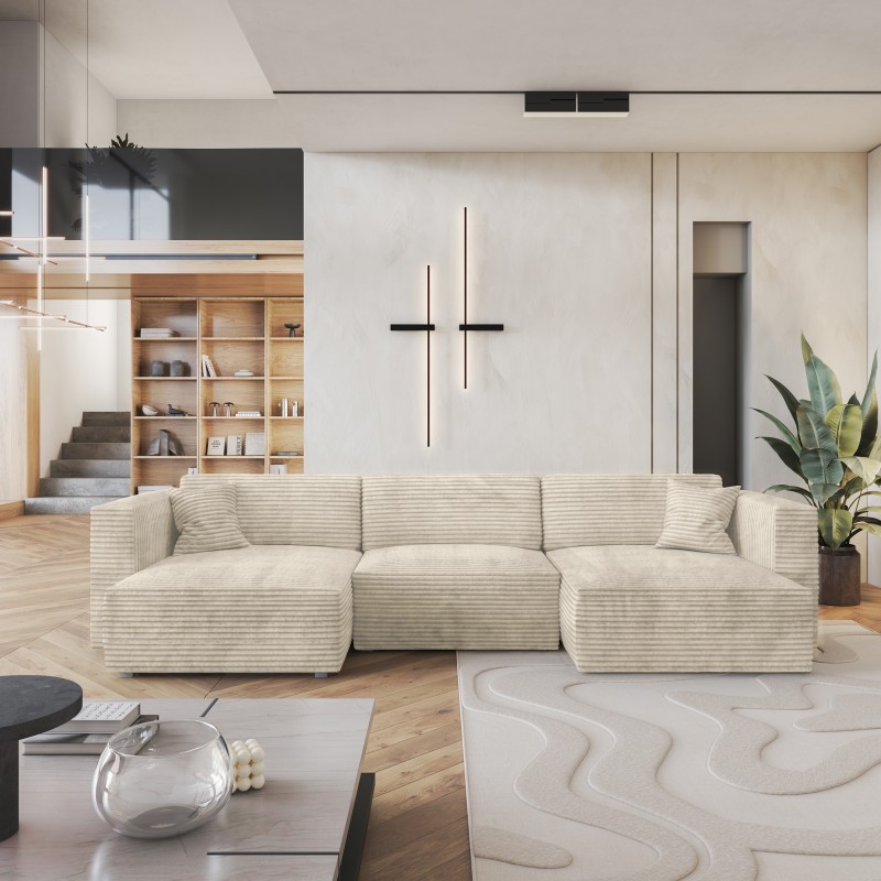 Masseno Narożnik SARMO z funkcją spania i pojemnikiem na pościel Narozniki U, Rozkładana sofa - Kremowy, TILIA 03