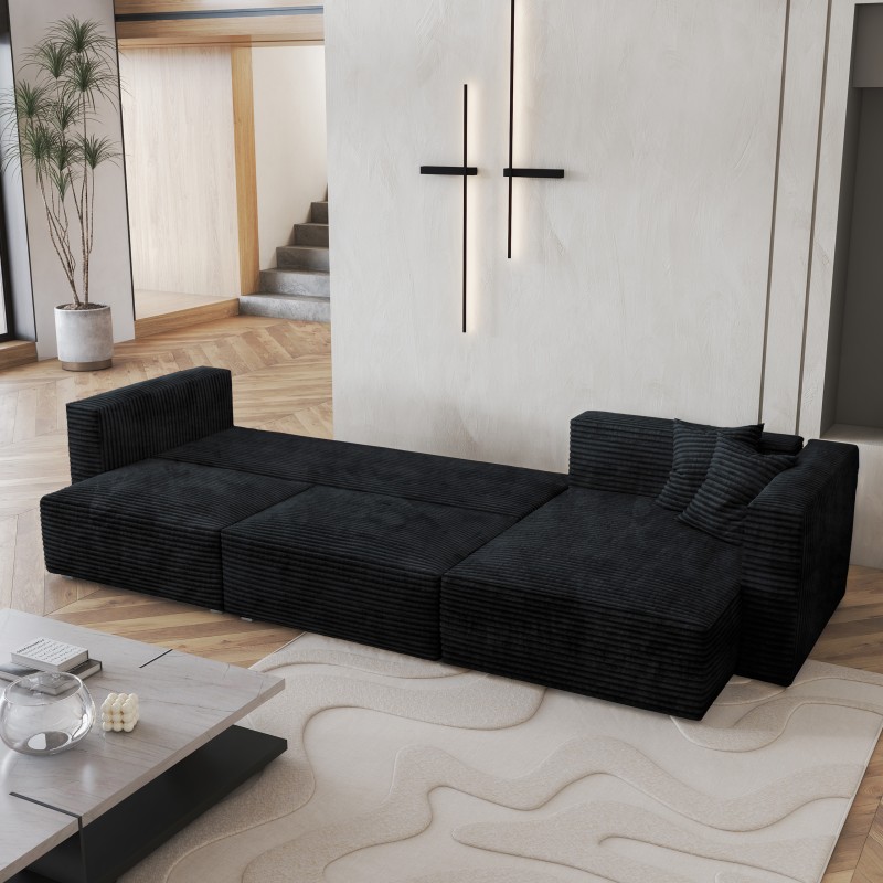 Masseno Narożnik TOLMO z funkcją spania i pojemnikiem na pościel Narozniki L, Rozkładana sofa - Czarny, TILIA 100