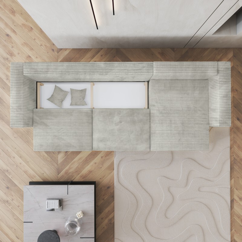 Masseno Narożnik TOLMO z funkcją spania i pojemnikiem na pościel Narozniki L, Rozkładana sofa - Jasnoszary, TILIA 83