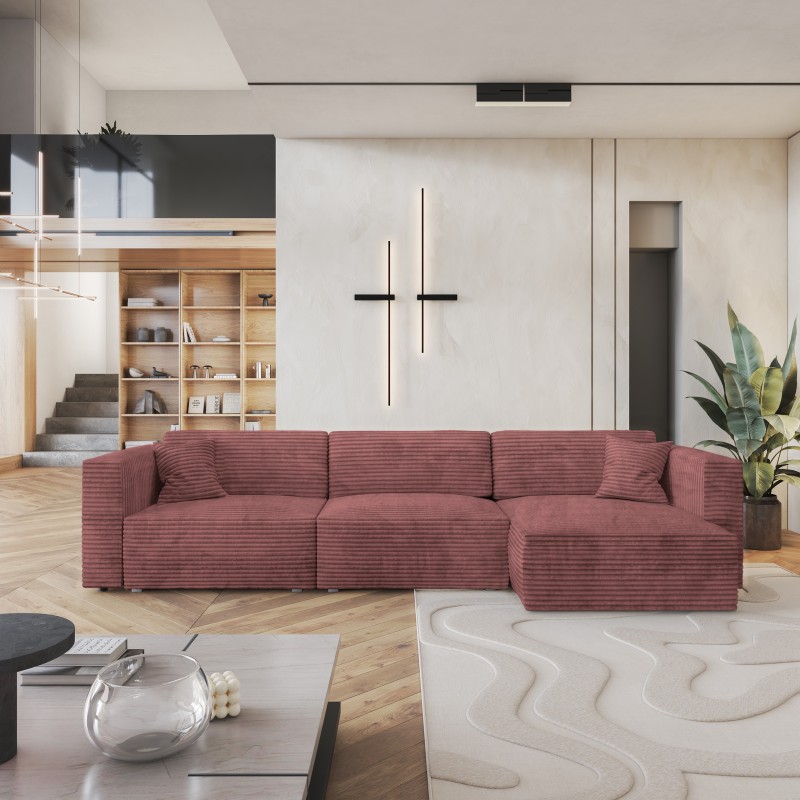 Masseno Narożnik TOLMO z funkcją spania i pojemnikiem na pościel Narozniki L, Rozkładana sofa - Pudrowy róż, TILIA 62