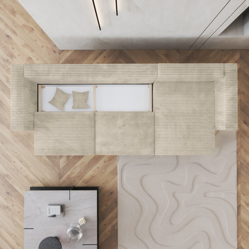 Masseno Narożnik TOLMO z funkcją spania i pojemnikiem na pościel Narozniki L, Rozkładana sofa - Kremowy, TILIA 03