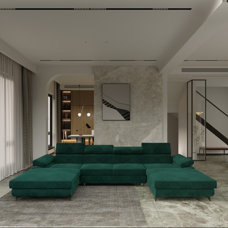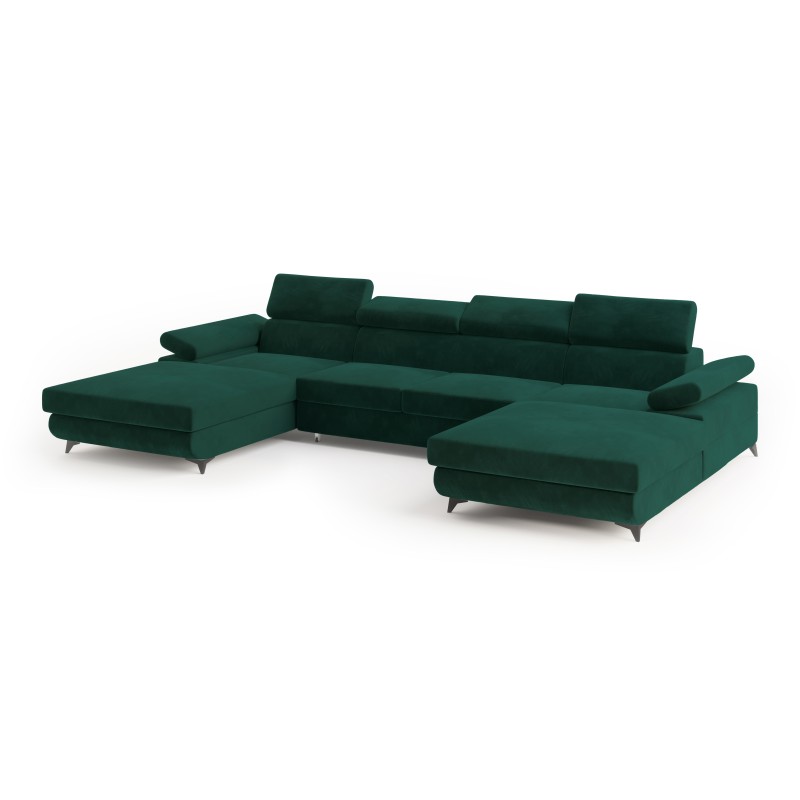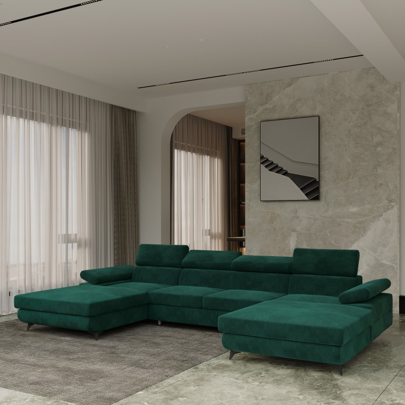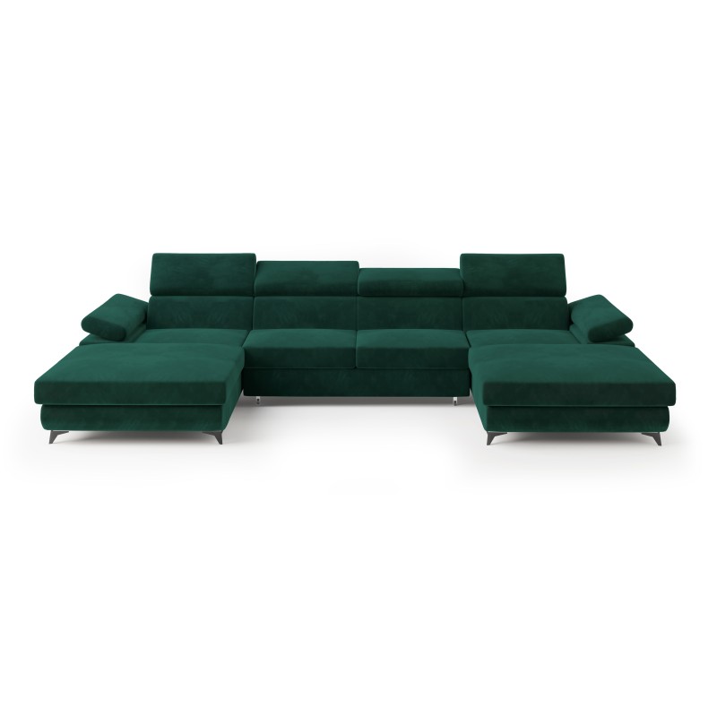 Masseno Narożnik DETTI z funkcją spania i pojemnikiem na pościel Narozniki U, Rozkładana sofa - Zielony, MONOLITH 37
