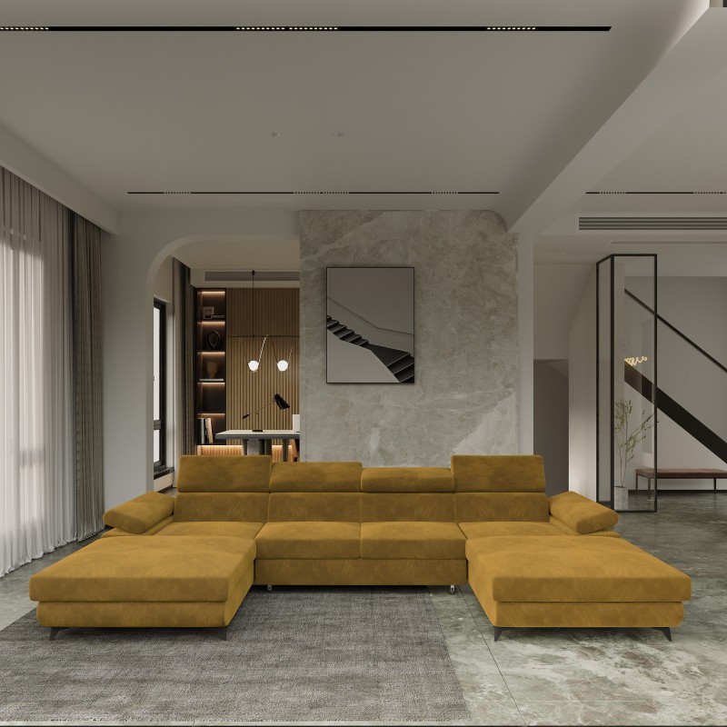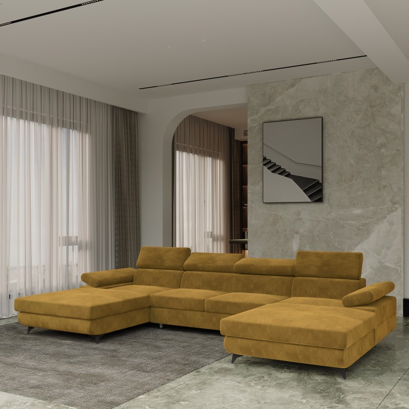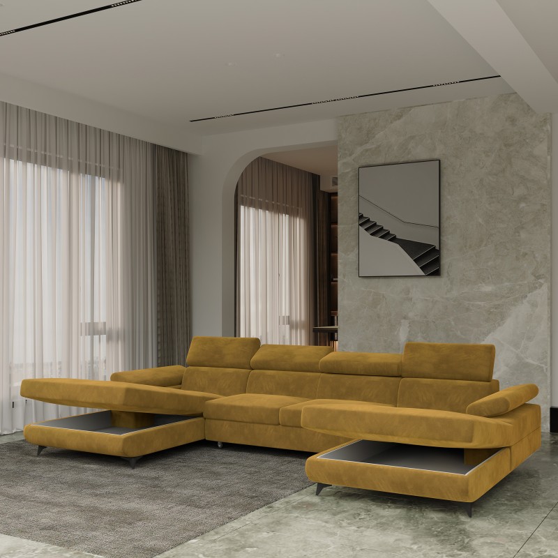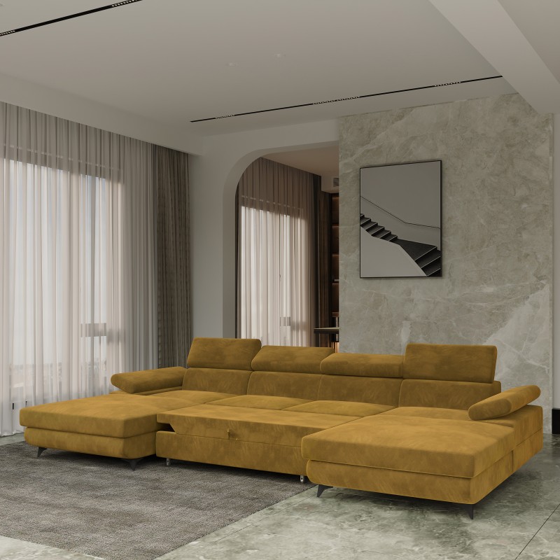 Masseno Narożnik DETTI z funkcją spania i pojemnikiem na pościel Narozniki U, Rozkładana sofa - Żółty, MONOLITH 48