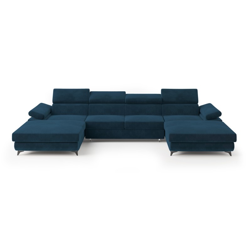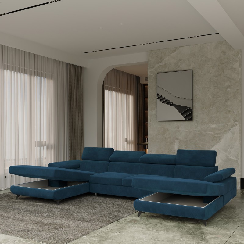 Masseno Narożnik DETTI z funkcją spania i pojemnikiem na pościel Narozniki U, Rozkładana sofa - Niebieski, MONOLITH 77